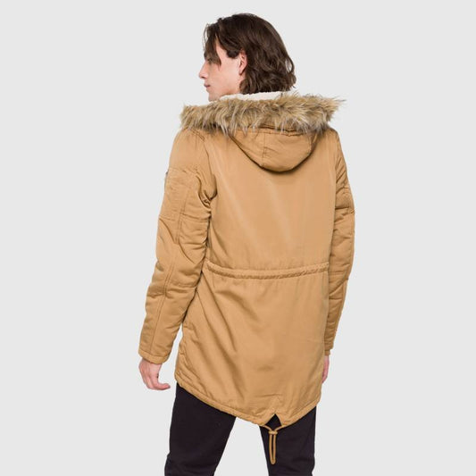 Campera Parka Unisex Invierno Forrada Piel Corderito Capucha Ocre S